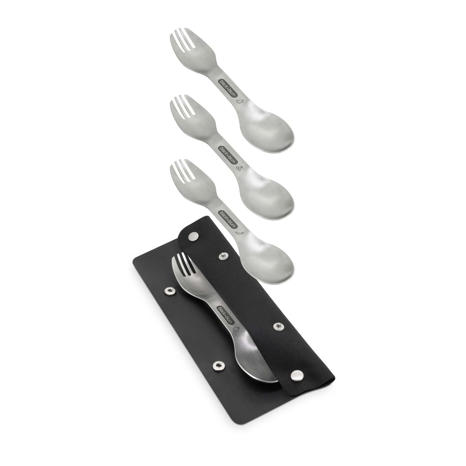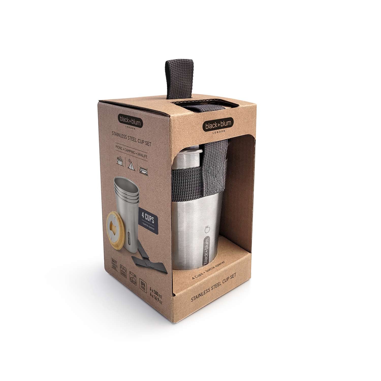 Das 4-teilige Camping Teller-Set aus Edelstahl von black+blum ist ideal für Outdoor-Abenteuer. Leicht, stapelbar und mit Fruchtmotiven gekennzeichnet. Inklusive Bambusbrett als Staubschutz sowie Schneide- und Servierbrett.