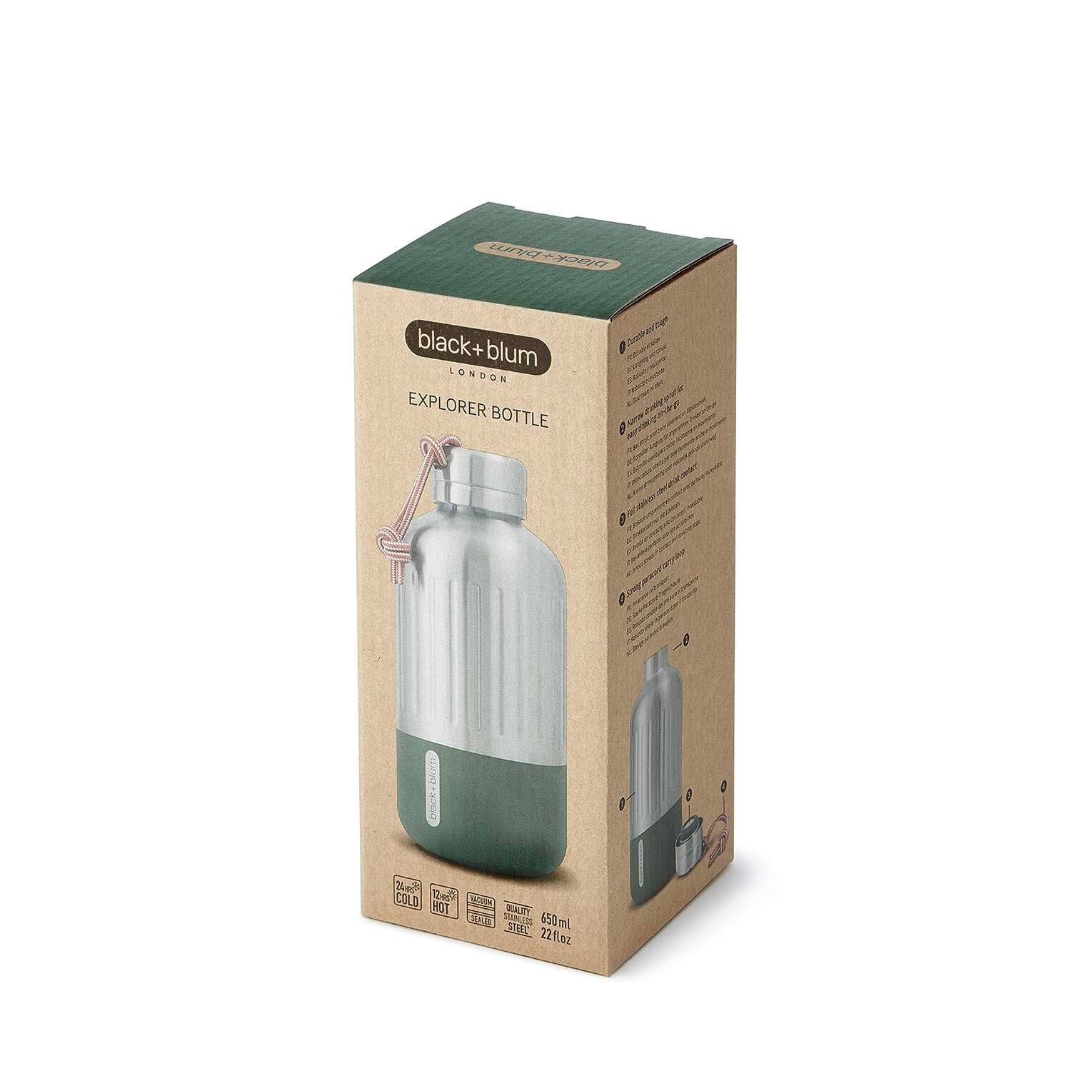 black+blum Explorer Isolierflasche im idealen Design für Ourdoor- und Freizeitvergnügen - die durchdachte und besonders robuste Thermoflasche hält den härtesten Bedingungen stand. Die isolierte Outdoorfllasche hält Getränke stundenlang heiß oder kalt. Zeitloses, langlebiges Edelstahldesign.