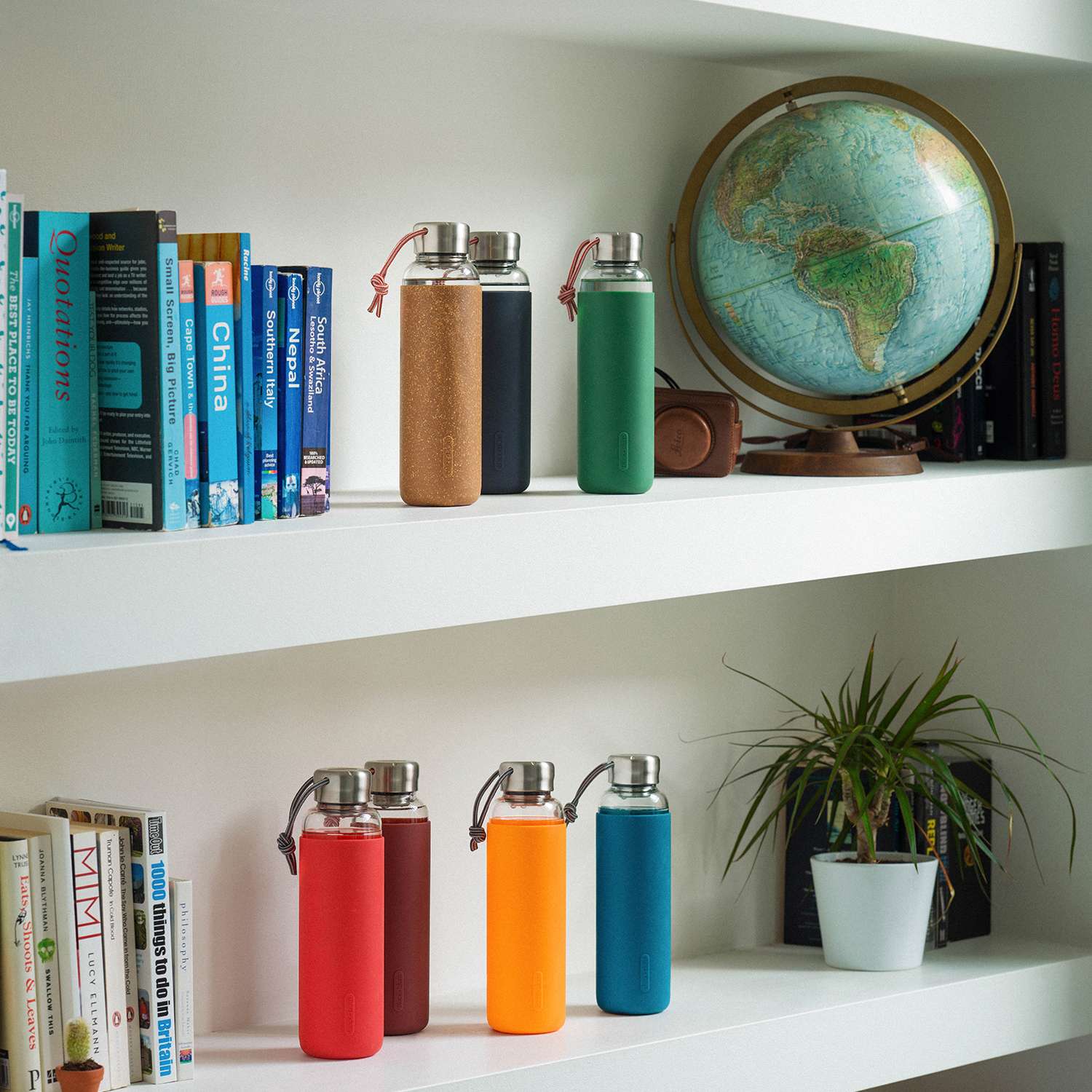 - stilvolle Glas-Wasserflasche mit Edelstahldeckel und Silikon-Schutzhülle