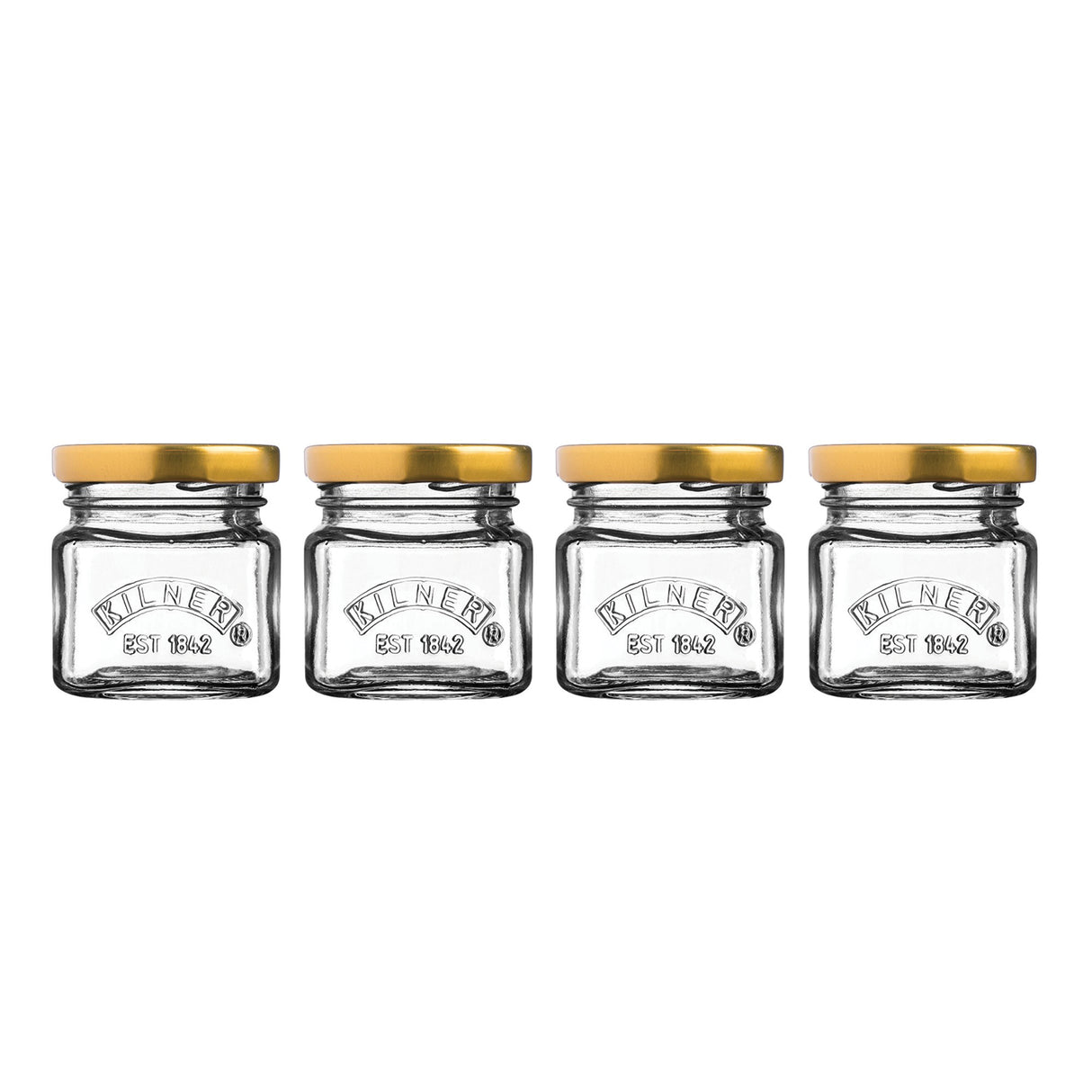Positiv auffallend sind die 4 Kilner® Mini-Marmeladen-Gläser, stylisch schmücken Sie jeden Tisch und eignen sich auch perfekt als Geschenkidee für jeden Marmeladen Liebhaber. Besonders praktisch für das Servieren einer Vielzahl von Konfitüren und Gewürzen. Die praktischen Schraubverschluss Deckel der niedlichen 4 Mini-Gläser besitzen Dichtstreifen für maximale Frische.