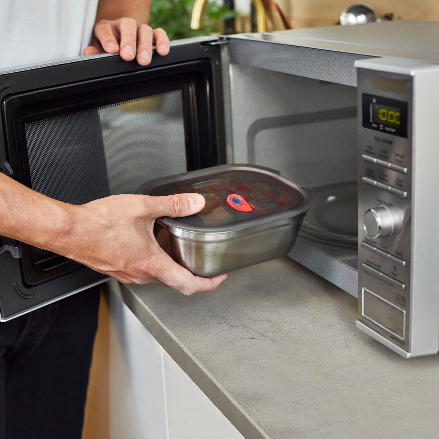 Ob Meal Prep, gesundes Mittagessen oder Reste vom Abendessen – diese Lunchbox macht alles mit. Schluss mit auslaufenden Behältern und kompliziertem Umfüllen: Einfach einpacken, transportieren, erwärmen und genießen!