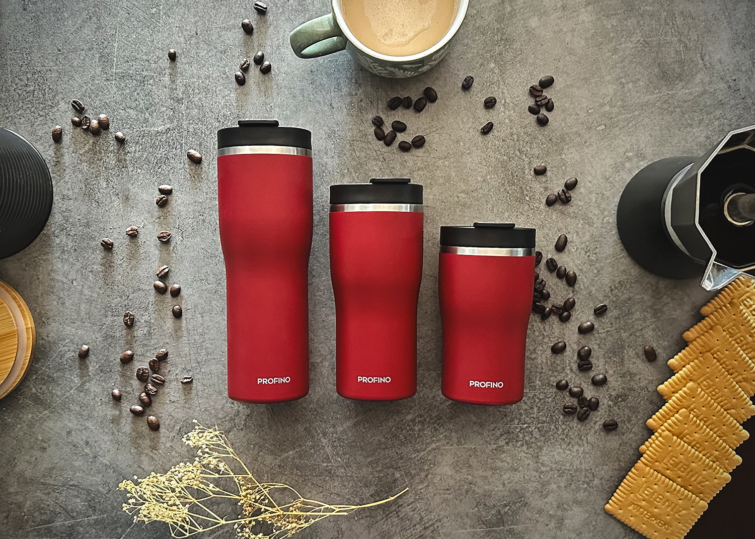 Der PROFINO Barista Isolierbecher ist der praktische Begleiter für unterwegs - dank der Höhe des Bechers passt er perfekt unter verschiedene Kaffeemaschinen, der hochwertige, zweiwandige Edelstahl - Körper hält Kaffee und Tee heiß, perfekt für den Coffee - To - Go. Der Deckel des Bechers ist dank des Doppel-Lock Systems auslaufsicher, sodass der Becher auch gut in der Tasche transportiert werden kann.