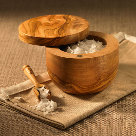 Salzbehälter mit Deckel und Löffel aus Olivenholz, Ø 11cm
